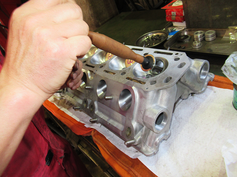 「カカン~、カカン~、カカン~・・・・・」と小気味よい音と共に作業をヘッドから開始したエンジンOH。