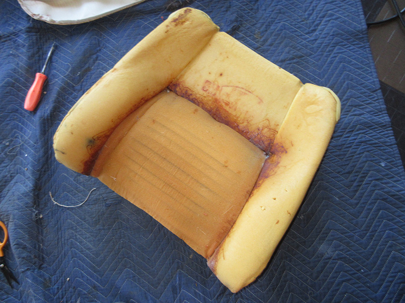 まずは一脚完成・・・・・・・・・・・・・・・・新旧表皮の生地及びデザインの違いが分かるかと。