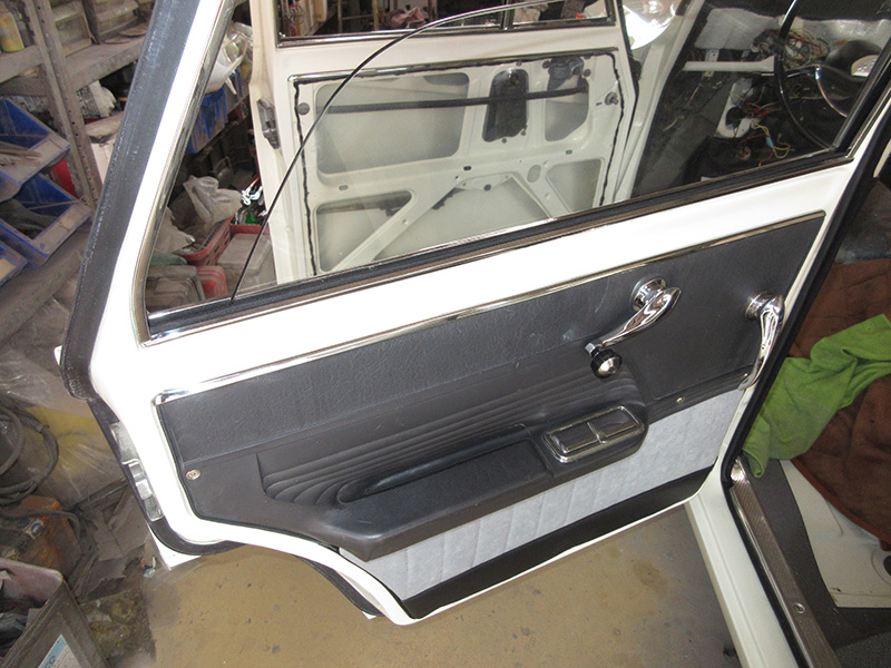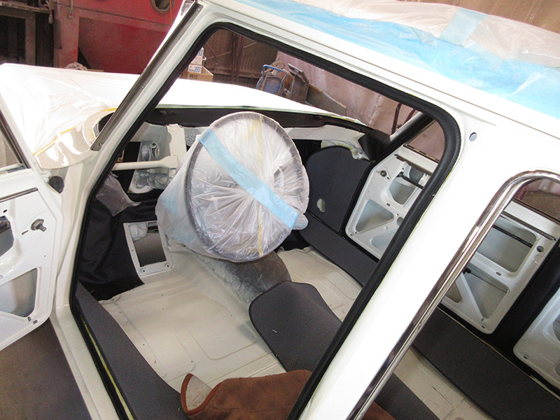 過去の他の個体同様、室内側バルクヘッドの防音断熱カバーも新規で製作の上、取り付け後に室内側サイドシルの目隠しの役も兼ねているカーペットの貼り付け・・・・・・・・・・・と、ここで私の管轄でのお仕事は一旦終了。