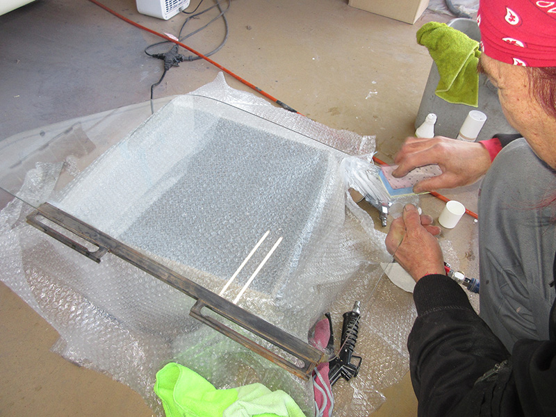 元々付いていたガラスキズを極力落とすべくガラス用のコンパウントでの磨き中の画。(笑)