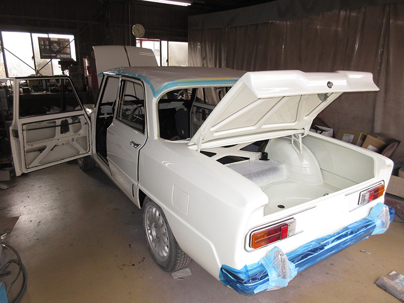 塗装剥離→錆び取り→錆止め剤塗布→塗装とボディーレストア時と同じ工程を経ての完成となる当店言う「仕上げ済み」。