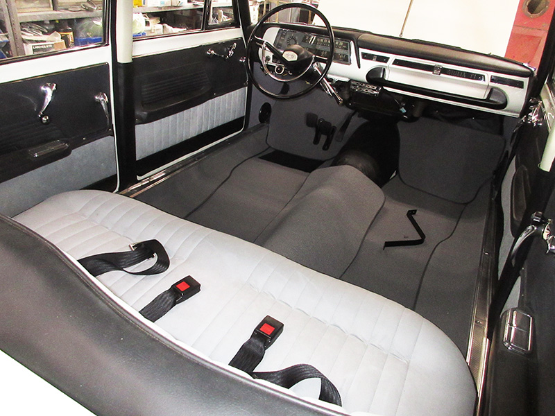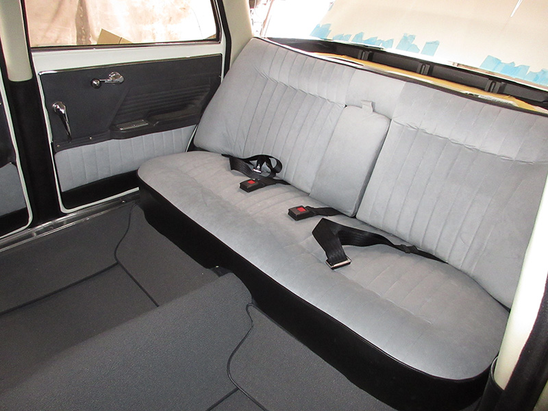 前席足元までカーペットを敷き詰め後部席を取り付け。