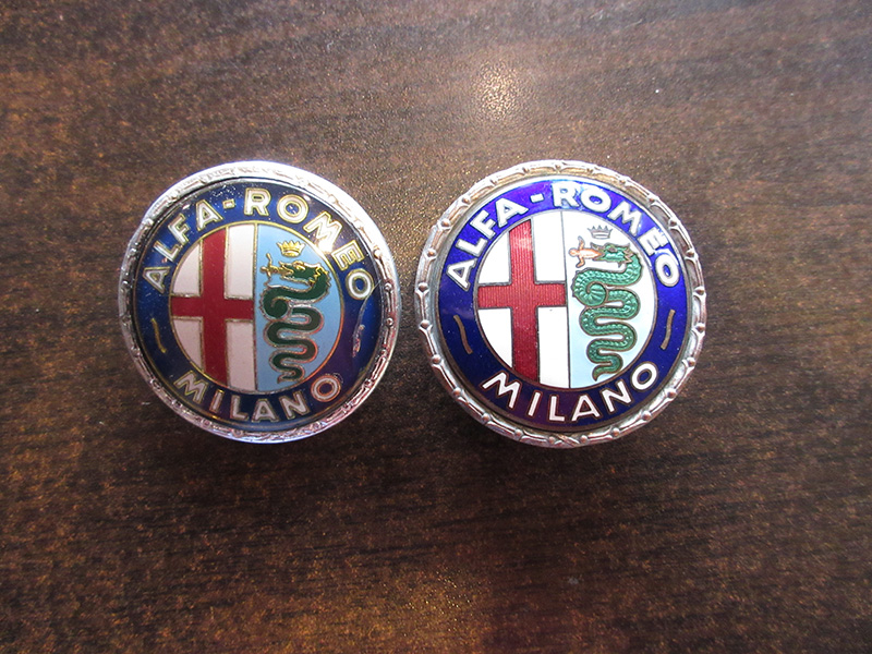 この個体に元々付いていたのが左側の物で50年代のモデル用(七宝焼きの本物)なのですが、あえて左側の60年台モデル用のオリジナル品(本物中古品)を取り付け予定・・・・・・・・・・・これまたヘッドライト同様、倉庫内をゴソゴソしていたら発見しました。(笑)