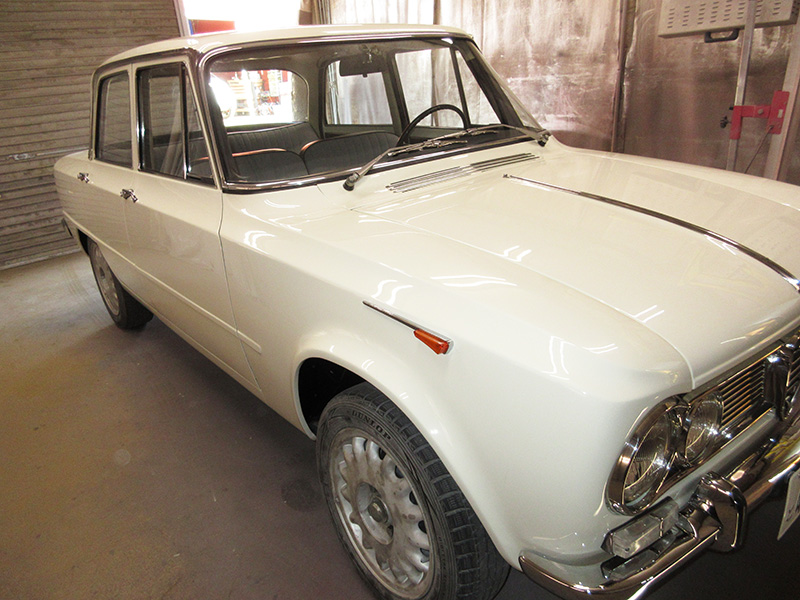昨年までにかけてレストアをさせていただいたジュリア1300T.Iもホワイト系の色でしたがこうして比較してみると今回の個体はかなり黄身がかったホワイト系・・・・・・・・・・・・・