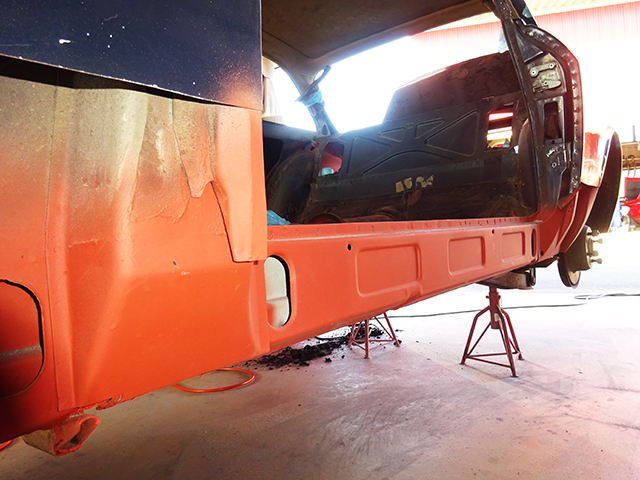 この個体、サイドシルやフロアなどジュリア系でよく言われる「泣き所」の状態が良かったとは言え、その他の箇所を剥離してみると出るわ出るわ・・・・。(笑)・・・・・・・・・・今回のように剥離作業の途中でその期待を裏切られることは多々経験してきましたので、お陰様で今や面の皮も厚くなり特段と驚きもありません。(笑)