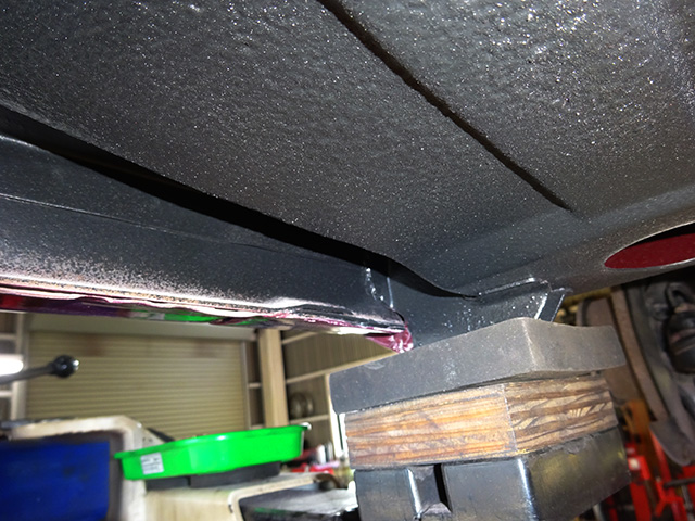 あらためて下から見てスンバラシイ個体だこと。(笑)ジュリア系のボディーで一番ダメージ率が高いといっても過言ではないフロントのジャッキアップポイントとインナーシルとアウターシルが重なったところにある水抜き穴、新車時から一度たりとも補修を受けずに今に至りこの状態ですから。