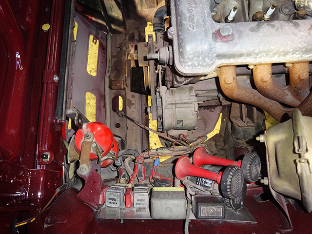 本来、この個所にはバッテリーが設置してあるわけですが、社外のホーンやら何やらをが・・・・・・・・・・ハイ、これも今まで多々見てきましたバッテリーをリヤに移設してある個体でした。