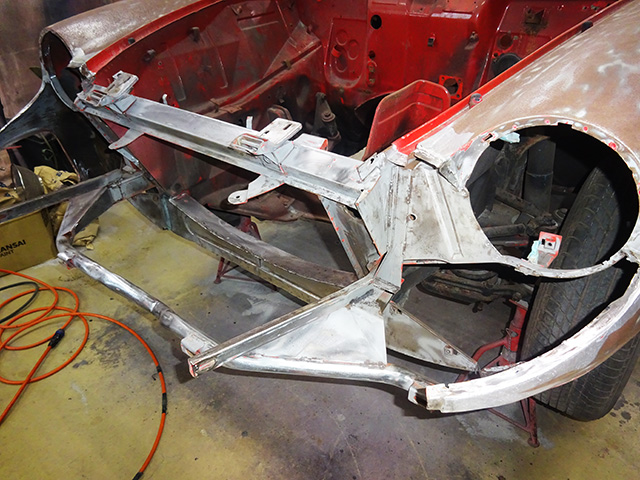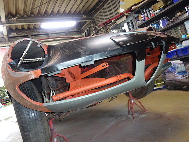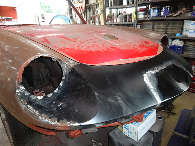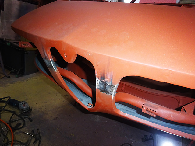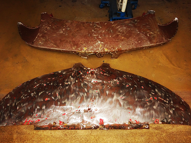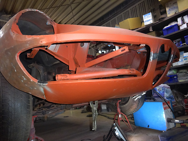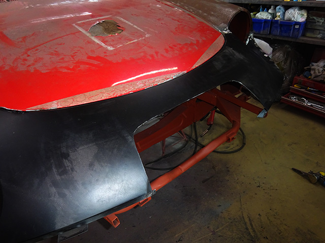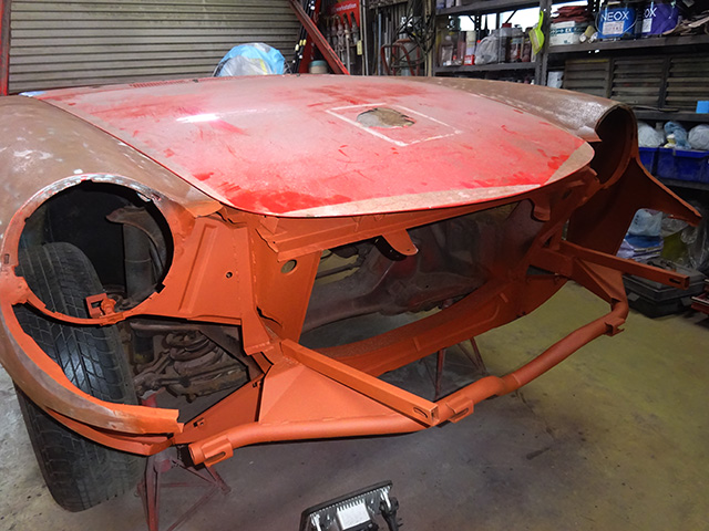 錆止めを塗布しフロントノーズ上部パネルの取り付け終了。