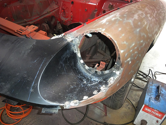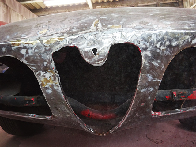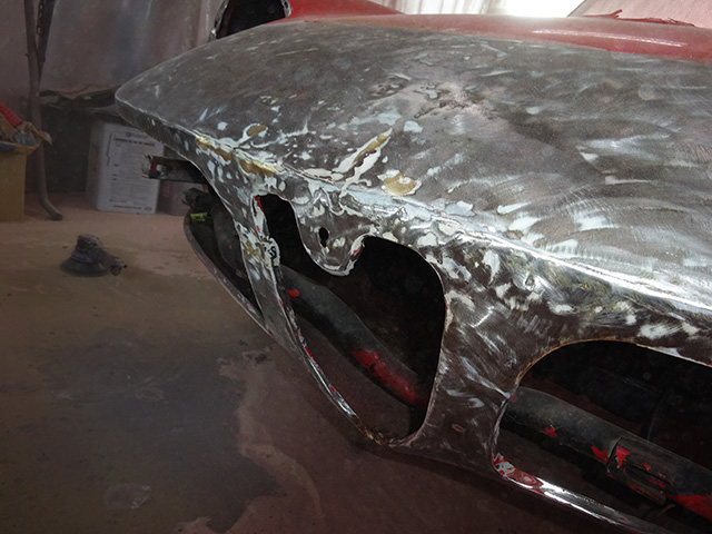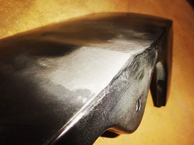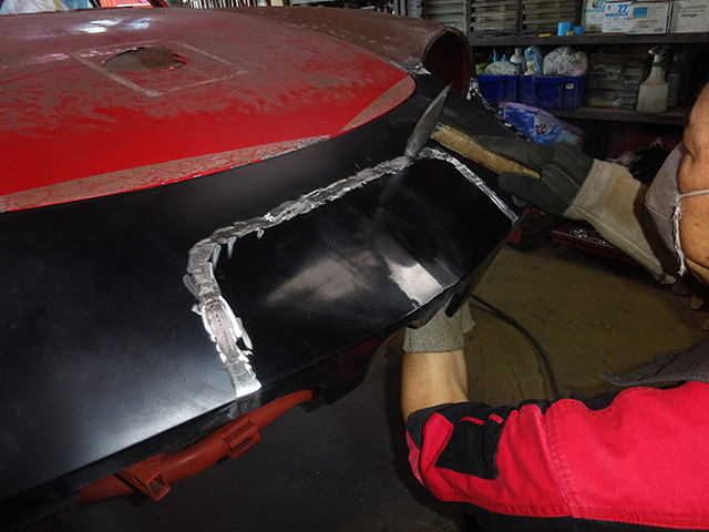 フロントフェイスは叩かれて整形されていたのでボコボコなのは致し方ないとしても(かなり荒いですが)、先端の盛り上がったエッジが無くされていたのは、恐らくデュエットのこと分からない板金屋さんが作業したことによるかと思われ・・・・・・・・・・・・・特段と珍しいことではなし、なんせ段付きのレストアで散々目の当たりにしてきましたから、ハイ。(笑)