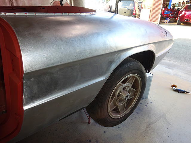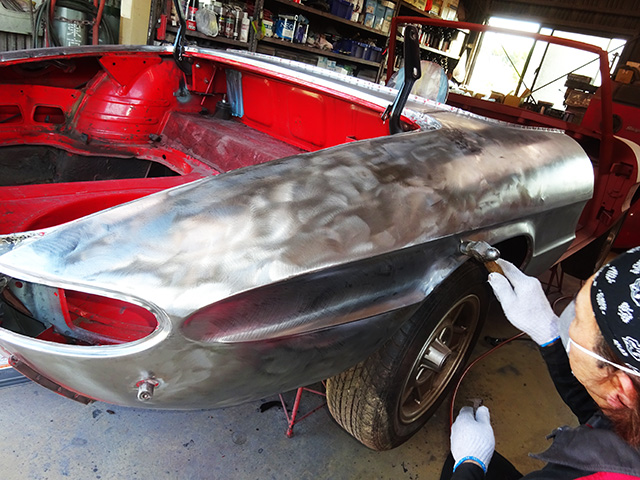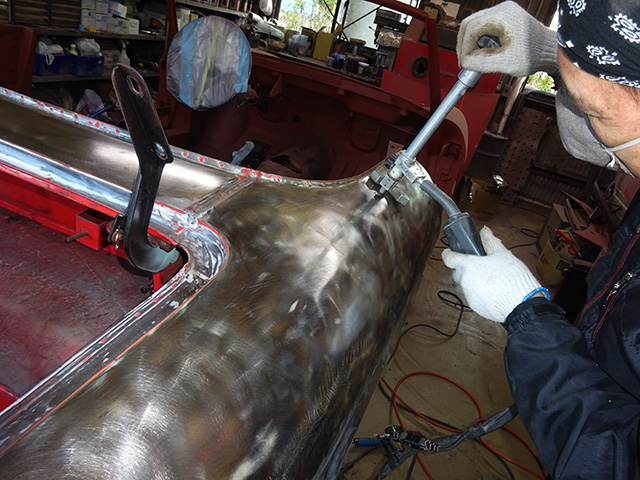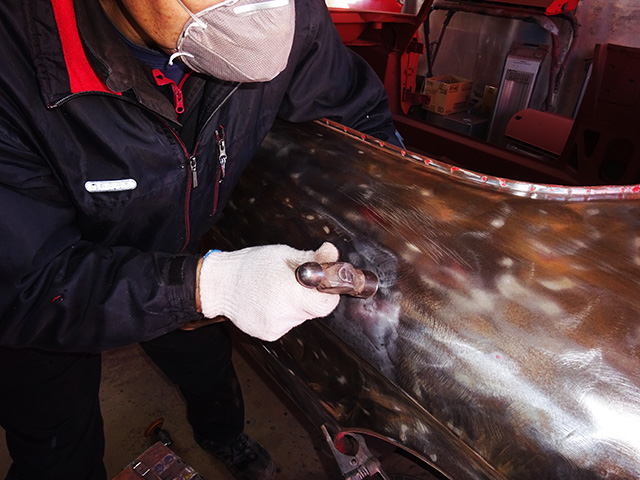 錆止めを塗布する前に細かいウネリやへこみを修正・・・・・