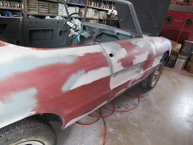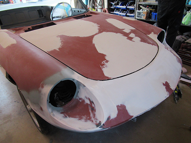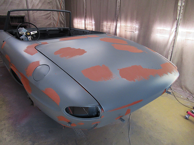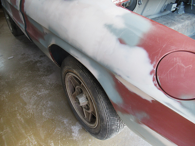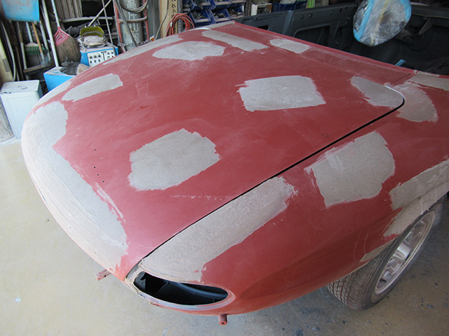 ボディーアウターパネルのサフェ入れ前に行う塗っては削り塗っては削りのスムージング作業・・・・・・