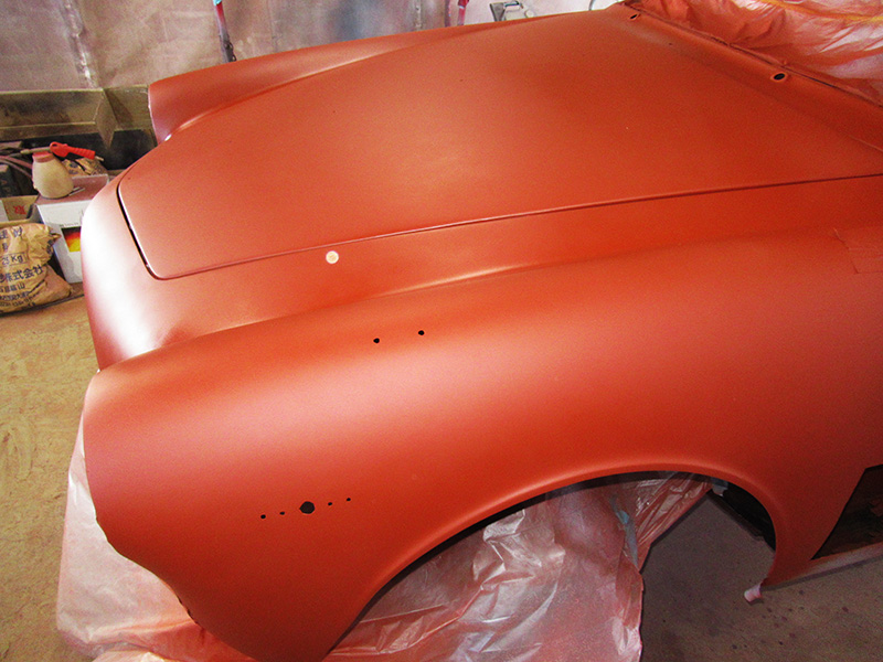 先日の日曜日、ボディーレストア中ジュリアスプリントのボディーに錆止めが入りました。