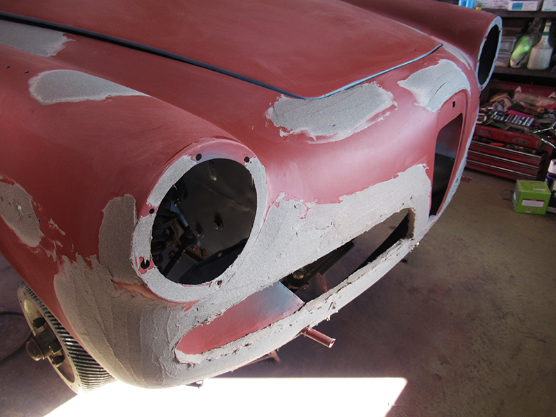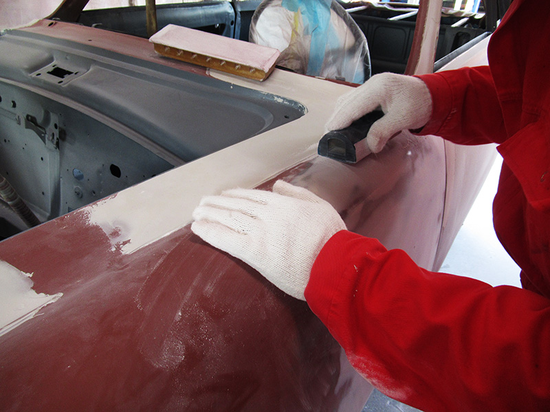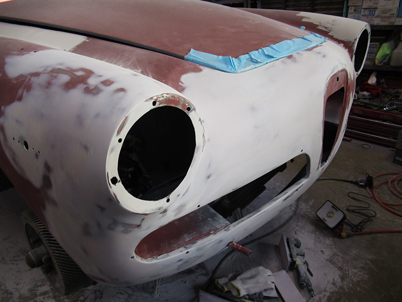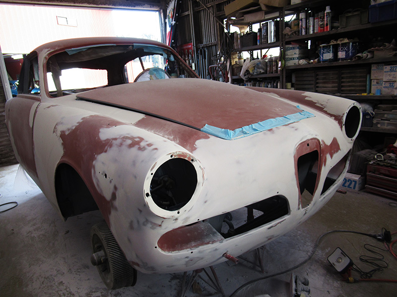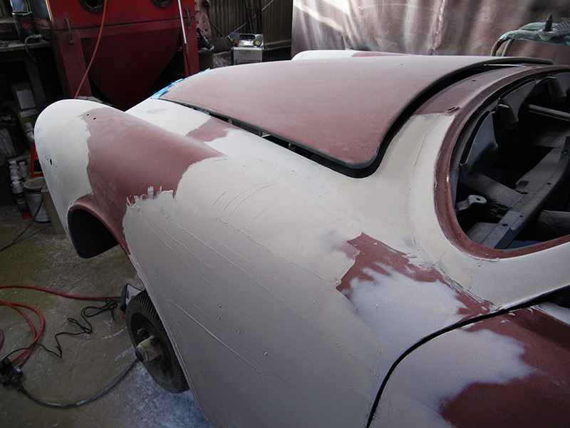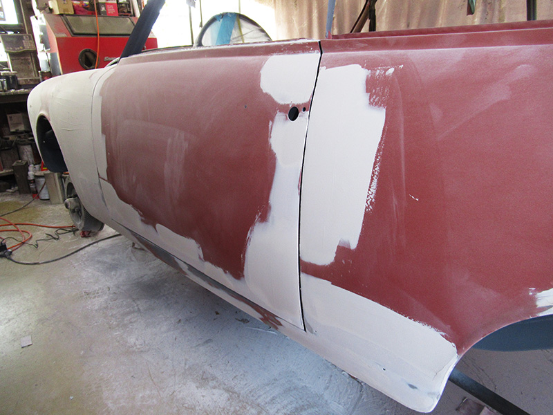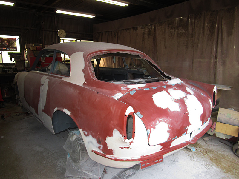 ジュリアスプリントのボディーレストアですが、前回のご報告後から合間に別のお車の作業をさせて頂きつつも、その完成に向けてスムージング作業が進んでおります。