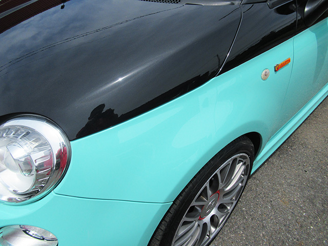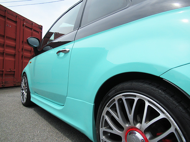 ビアンキチェレステカラーが施されたアバルト595C。
