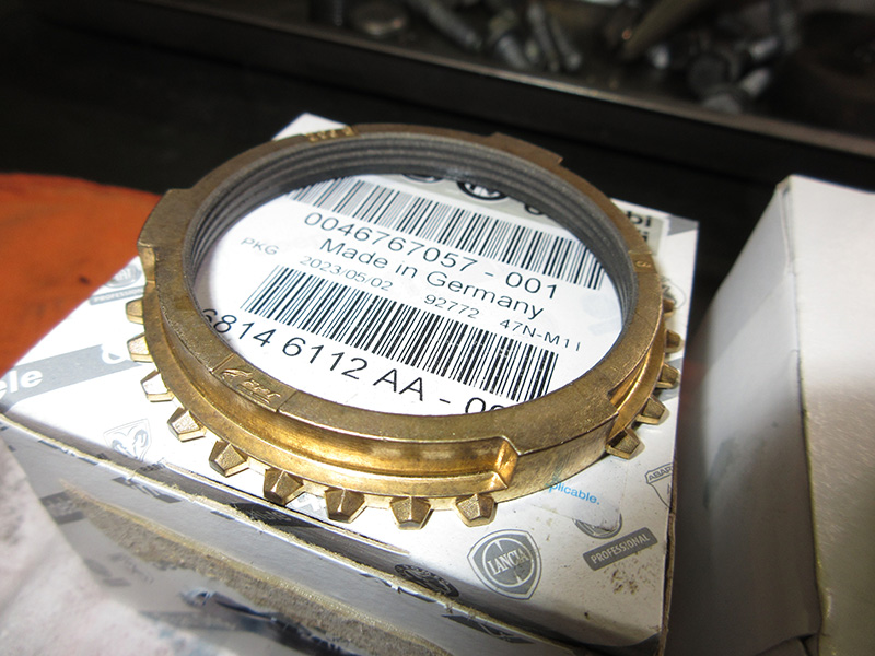 こちらがFR年代のアルファロメオに使用されているシンクロリング・・・・・・・・・・・・・GTV用と比べると形状もさることながら内側の溝がブレーキの役割となりますがそれに対してFR年代のそれは外側のザラザラした面がブレーキの役割、さすが工業製品、キッチリ進化してますな~。(笑)